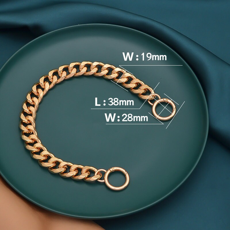 Introducing our Thick Replacement Chain Strap Purse Handle in Gold! This gorgeous accessory is perfect for dressing up any handbag, giving it a touch of luxury and style. It's also easy to use, simply attach the clasps to your bag and you're good to go! The handle measures 36cm end-to-end, and has a width of 19mm. It's the perfect way to add a little bit of glamour to your handbag collection!