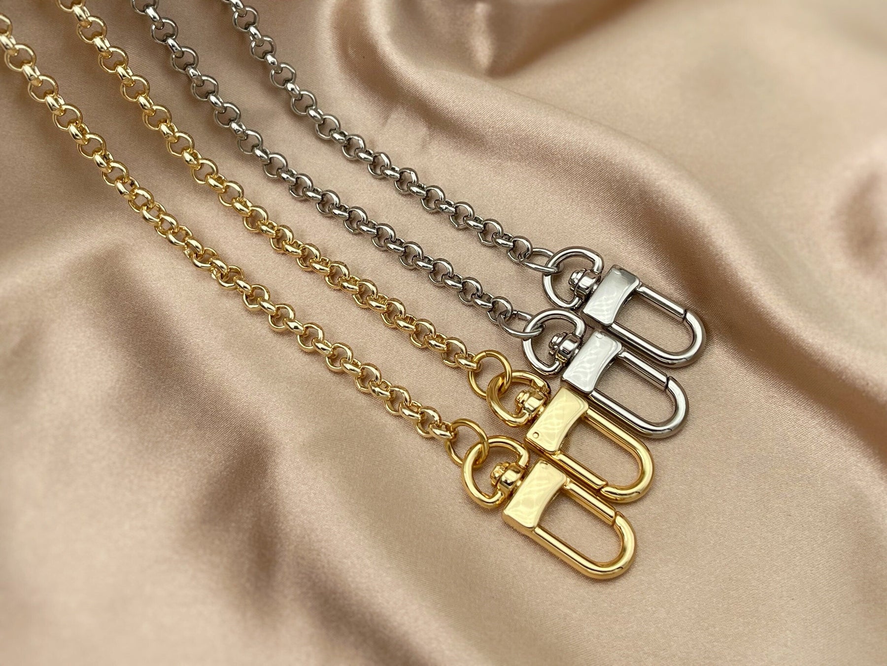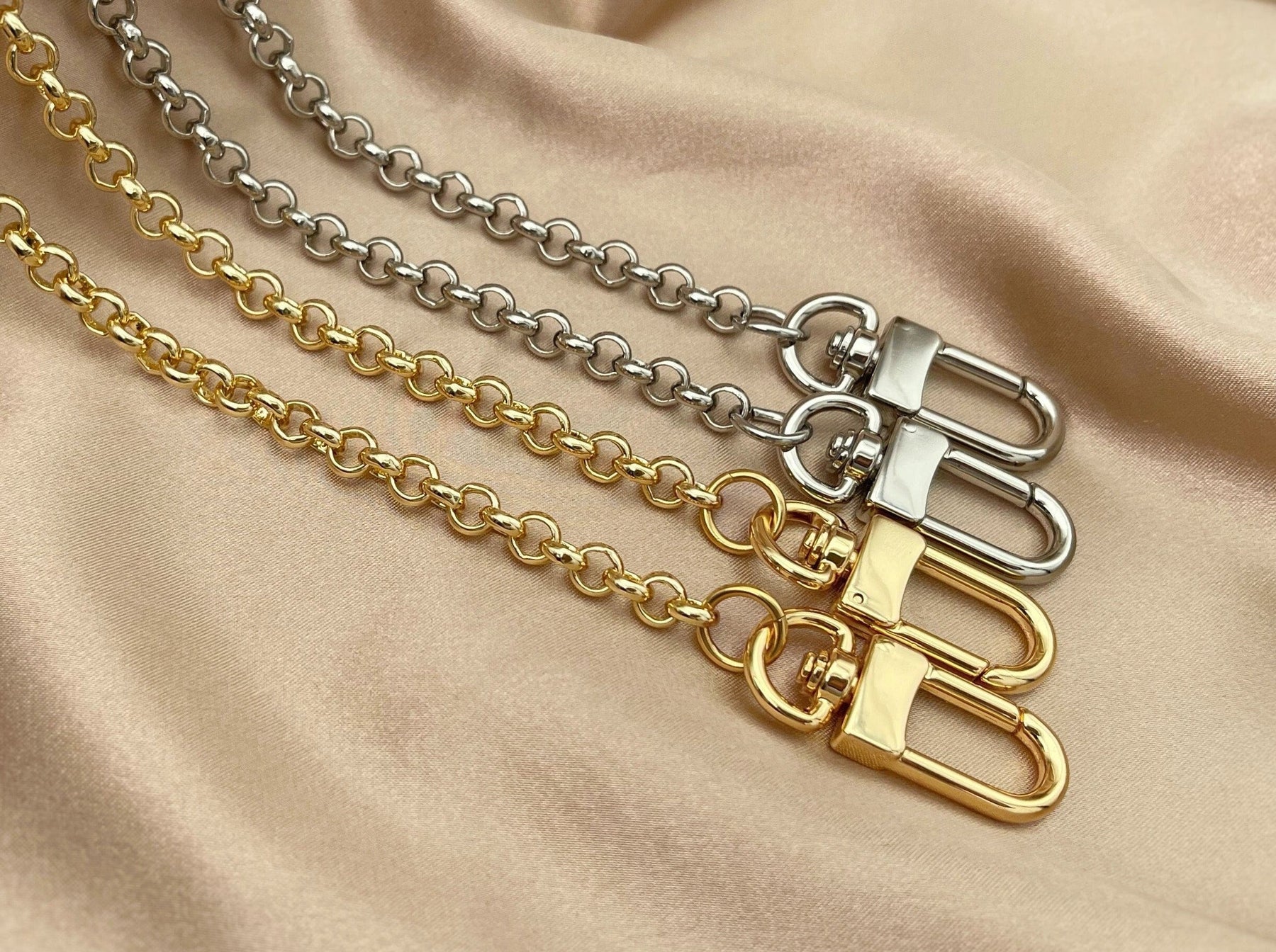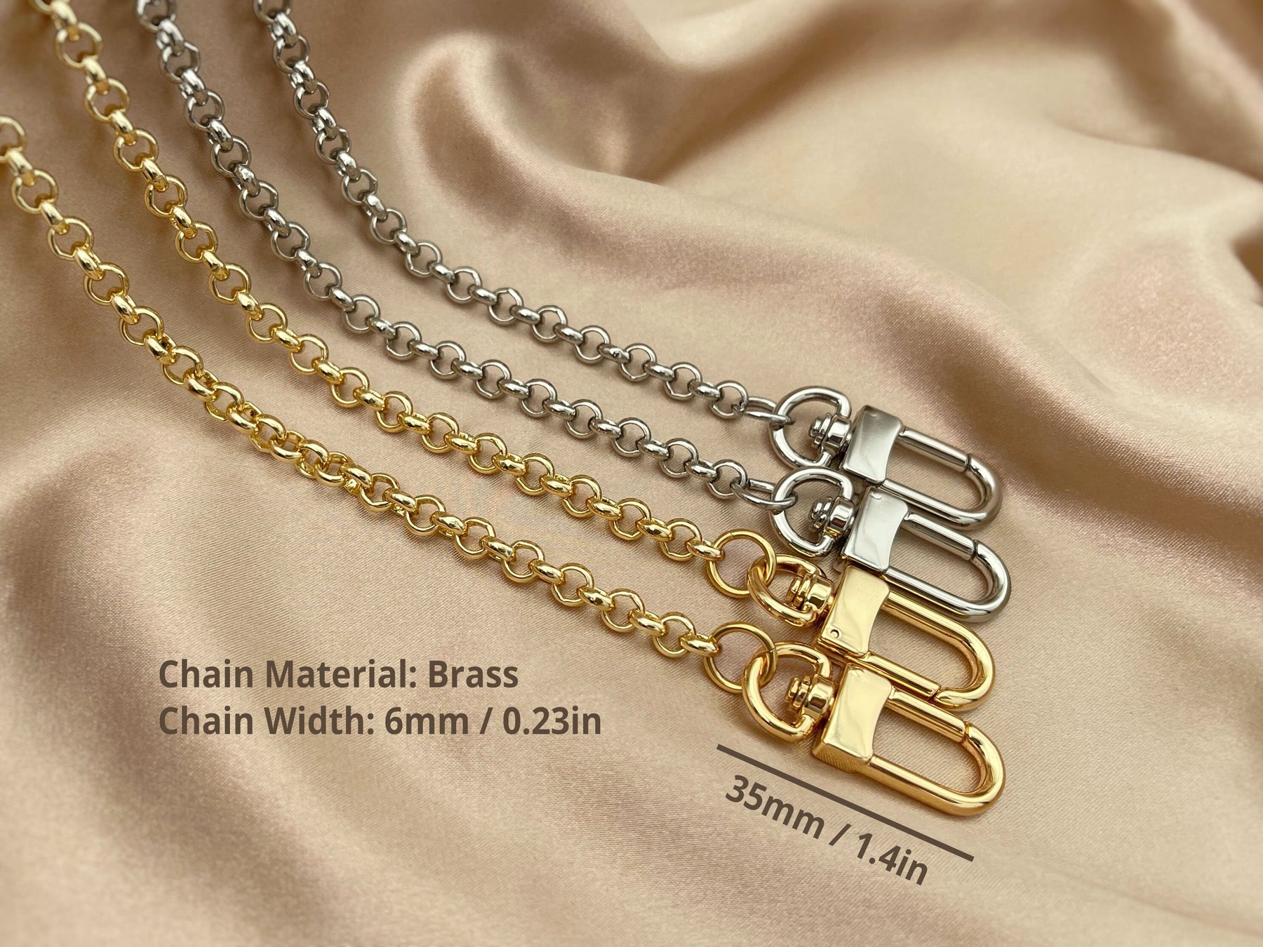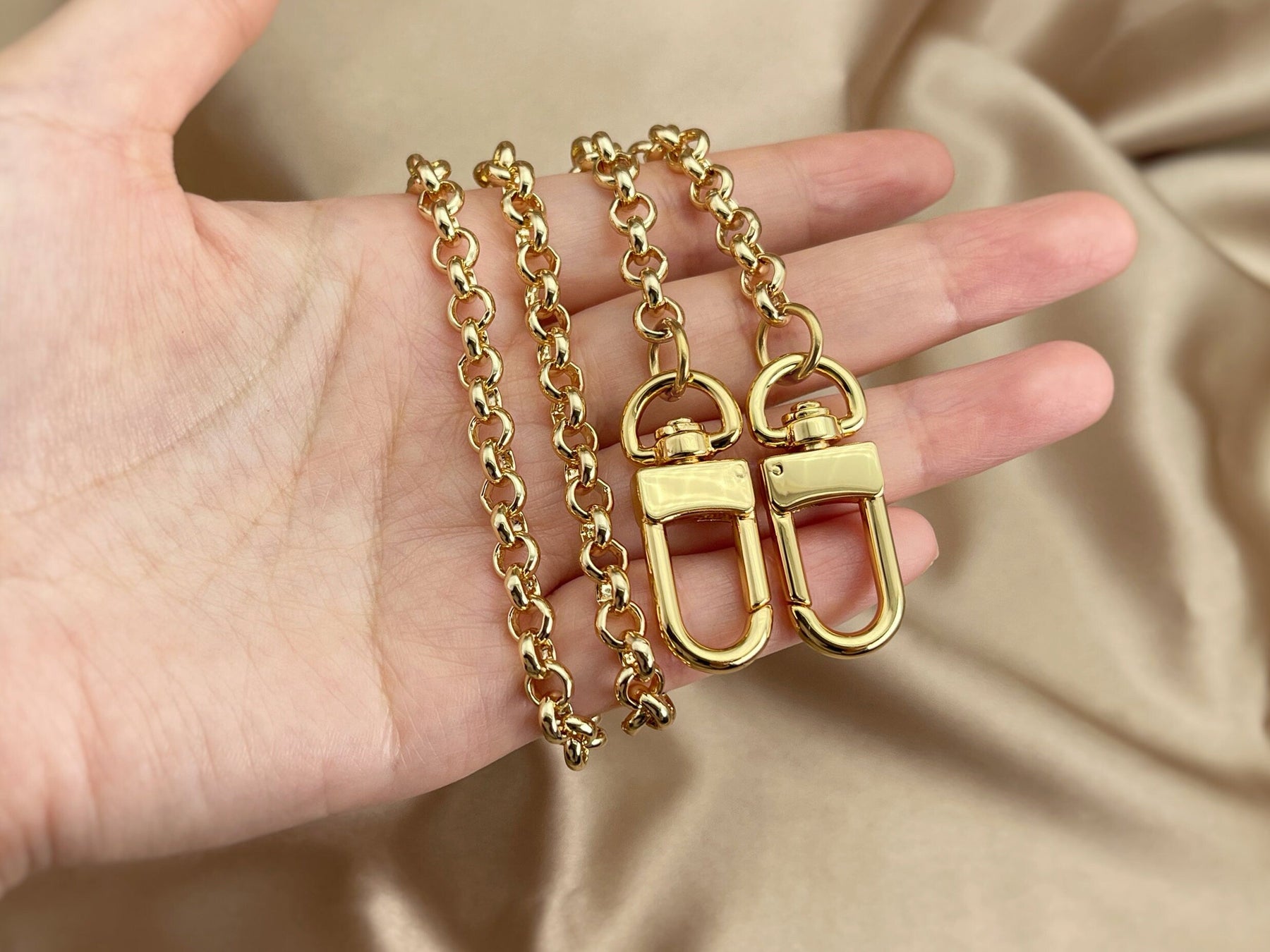 Add elegant glamour to your favourite designer handbags with this brass chain strap. The chain is crafted with quality brass chain and polished clasps, and is perfect as a handbag chain strap, crossbody strap, purse strap, wallet chain, shoulder chain, bag charm, bag strap extend, and your favourite designer handbag hardware!