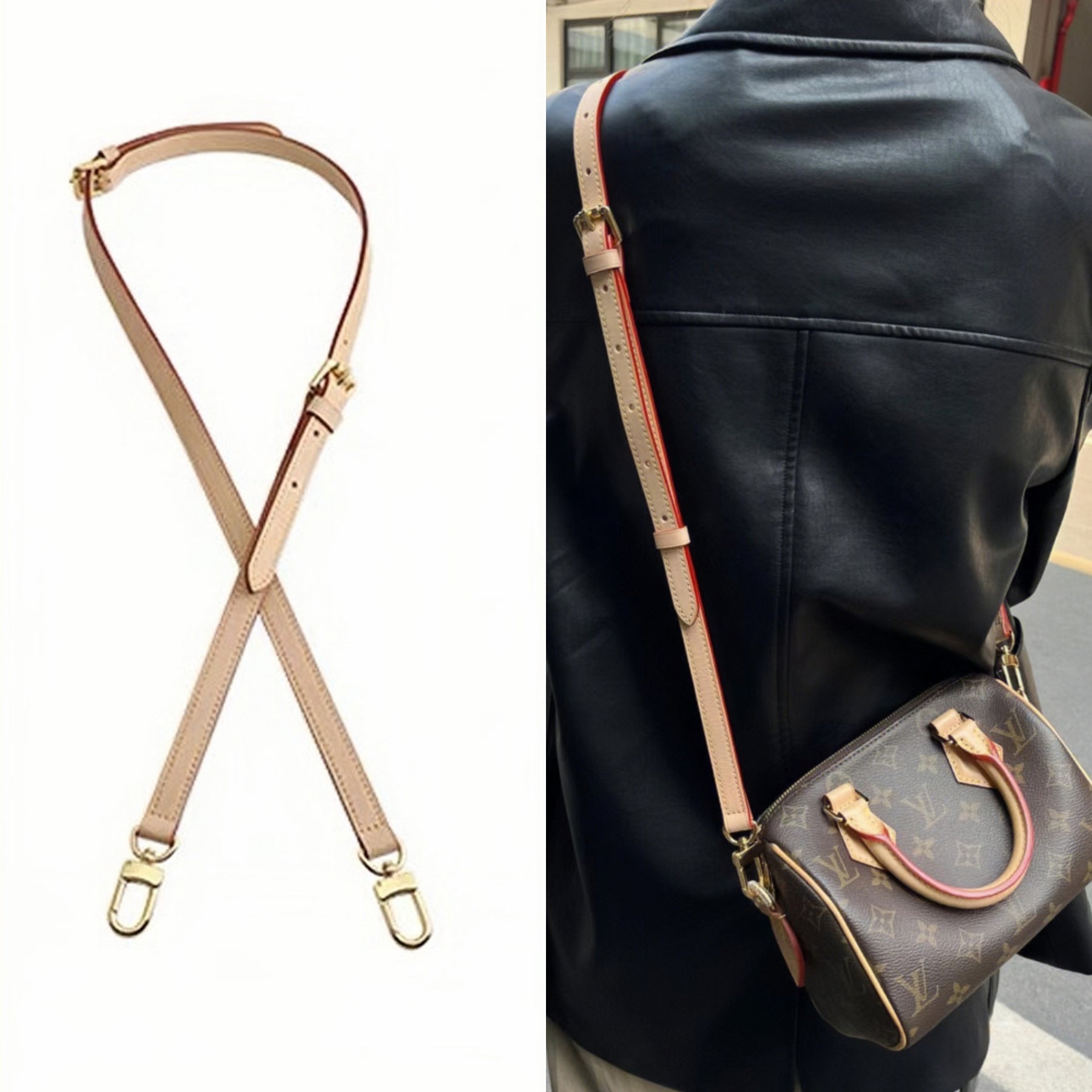 Add class and comfort with our exquisite Leather Strap for your Louis Vuitton Speedy Bag! Choose from natural or honey vachetta leather, carefully crafted with polished clasps and adjustable straps for the perfect fit. Feel confident knowing you've upgraded your LV Speedy with our premium leather strap - and make a statement wherever you go!