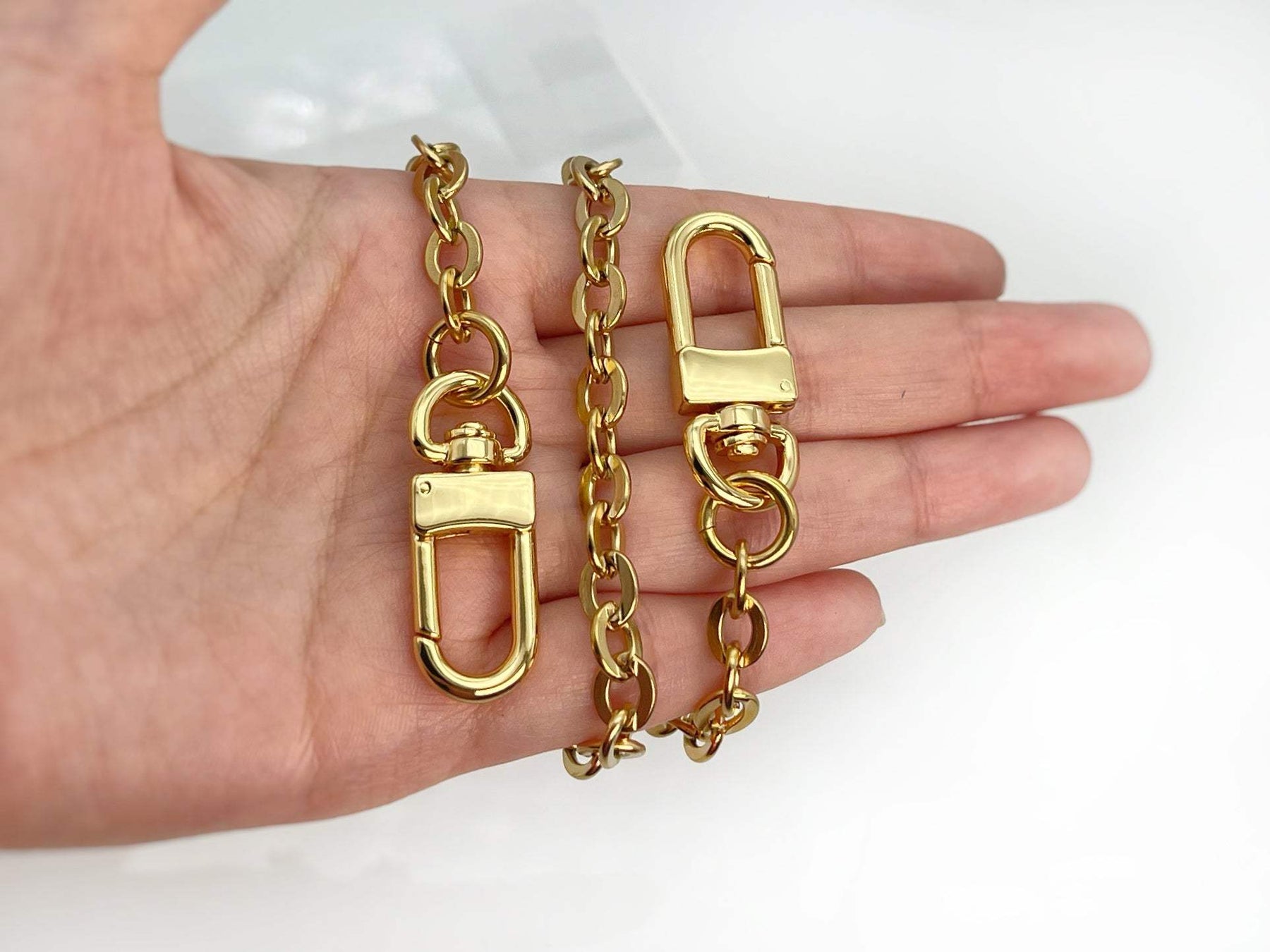 - 1x High-Quality Stainless Steel Gold Bag Chain Strap w/ Two Clasps