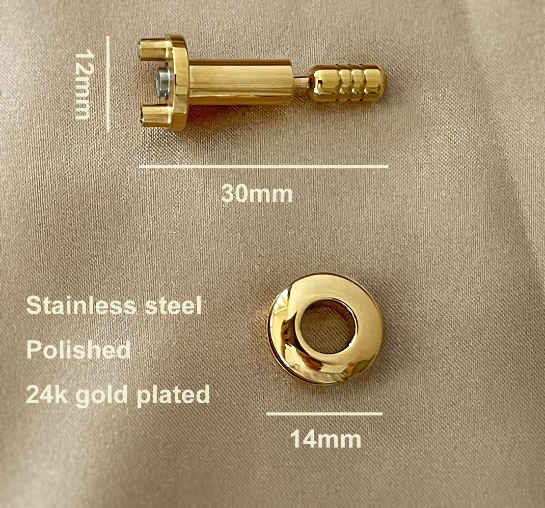 Polished Stainless Steel Purse Turn Lock, 24k Gold Plated, Gold Silver Purse Closure