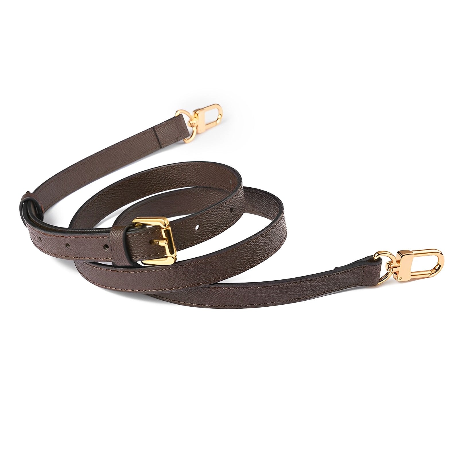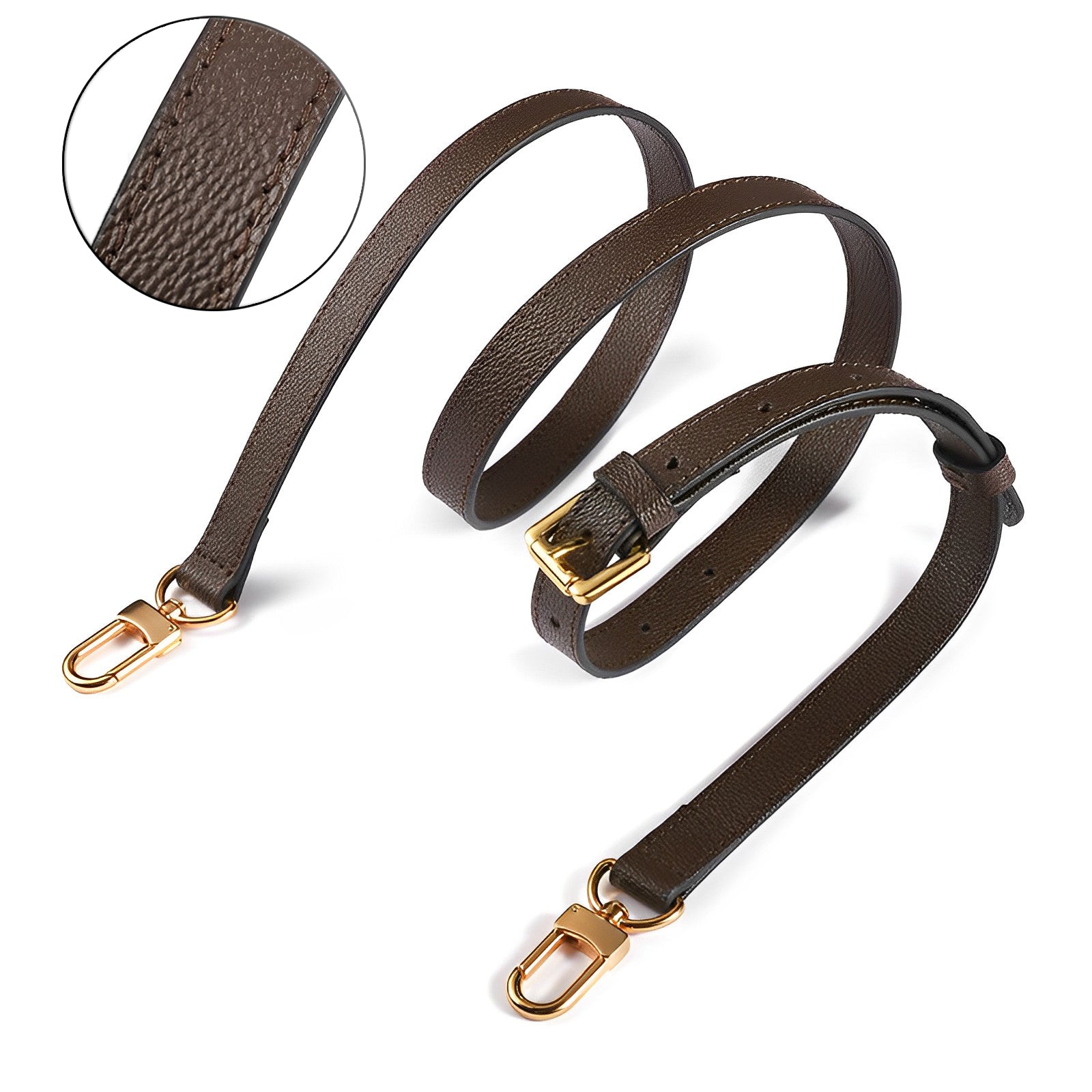 Take your style to the next level with this textured leather shoulder strap. Crafted with premium LV-inspired synthetic leather, it's designed for both comfort and durability. The dark brown hue adds an elegant touch to any bag, making it the perfect accessory for any outfit. Upgrade your accessory game with this fashionable and versatile shoulder strap.